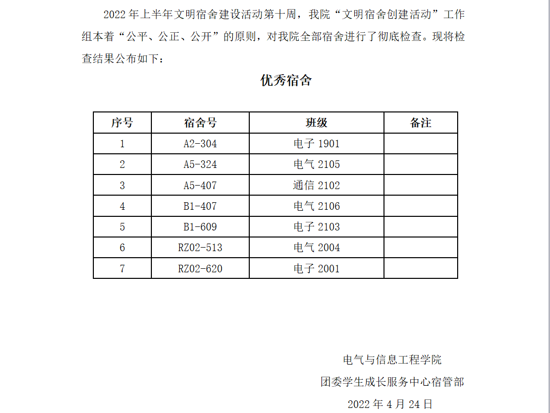 2022年上半年文明寝室创建第十周优秀寝室