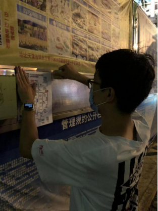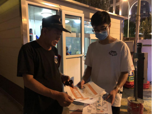 在基本知识的普及劝导后,我来到了相对老旧的小区,与门卫室的安保负责人咨询疫情防控的开展情况,并把一天总结到的防疫经验与资料加工成宣传单与安保负责人分享。在查阅相关资料后,实践队员李开来将宣传单与天津市内六区的发热门诊热线电话张贴在了小区的宣传栏中,以便大家平时对疫情加以了解重视。