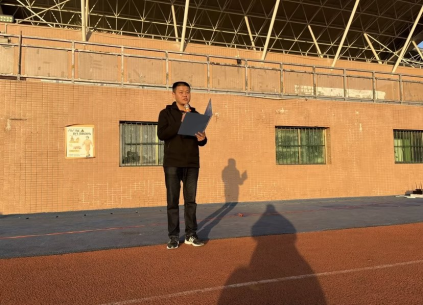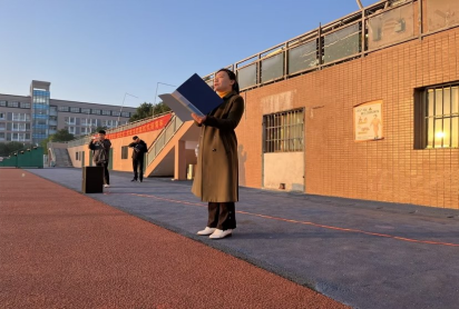 迎着朝阳,国旗护卫队成员迈着铿锵的步伐来到了国旗台下,全场一片肃静。在激昂的义勇军进行曲中,升旗手振臂一挥,鲜艳的五星红旗徐徐展开。全体师生的注目中,迎着初升的太阳,五星红旗在晨曦中迎风飘扬。