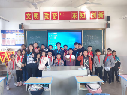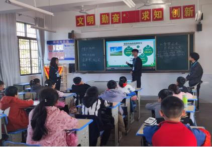 团队成员展示了当下农业工作者辛勤劳作的照片作为课堂引入,并提出问题,引发学生自主思考。接着,在学生们的踊跃回答之后,团队成员又介绍了农业的基本概念,使学生们意识到农业与我们的生活息息相关。在讲解完农业的发展历程之后,团队成员通过生动形象的图片和例子,讲述了智慧农业发展的意义。智慧农业不仅是现代农业发展的新理念、新模式和新业态,更是推动我国农业转型升级的重要途径。本次宣讲以时间为线索将农业分成四个阶段,从农业起步到智慧农业,通过课堂讲解使本次活动变得十分生动有趣,为学生提供智慧农业的基本知识和理论,引导学生对智慧农业的发展和应用产生兴趣和思考。双江小学的同学们也展示了勤奋好学的风貌,十分积极地配合团队成员并回答对应问题。