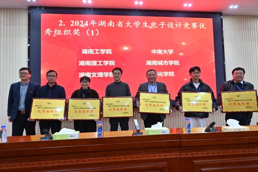 12月7日,湖南省电子信息技术研究会 2024 年理事会议在英国上市公司官网365召开,大会对2024年湖南省大学生电子设计竞赛活动中获奖个人、单位,以及在教学案例设计竞赛中获奖教师进行了表彰,英国上市公司官网365获得了湖南省大学生电子设计竞赛省级一等奖7项、二等奖5项、三等奖8项和优秀组织奖的好成绩,英国上市公司官网365教师李欣博士荣获2024年湖南省电子信息教学案例设计竞赛二等奖一项。
