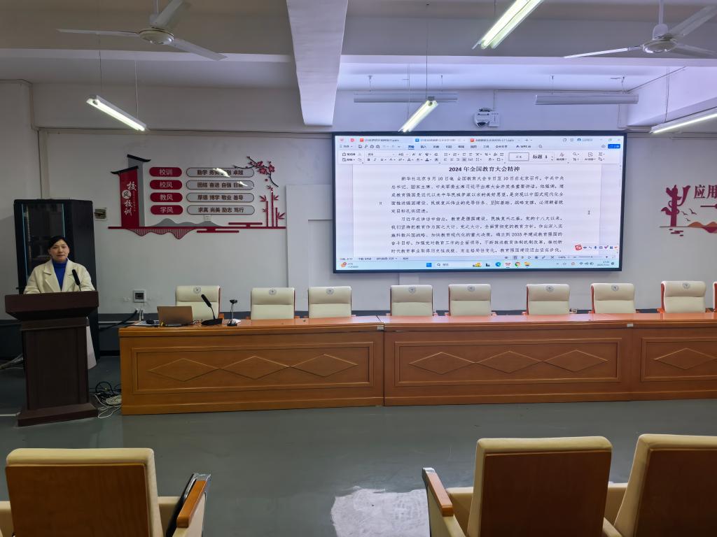 会上,党委书记喻霞领学了2024年全国教育大会、2025年全国教育工作会议、全省教育大会、全省教育工作会议的主要精神。