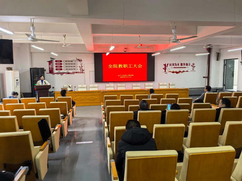 3月11日下午,电气与信息工程学院在3312会议室召开全体教职工大会暨师德师风专题培训会。电信学院全体教职工、民主党派人士参会,会议由院党委书记喻霞主持。