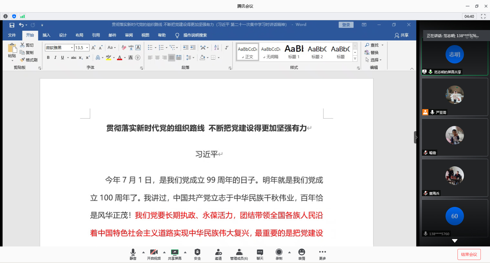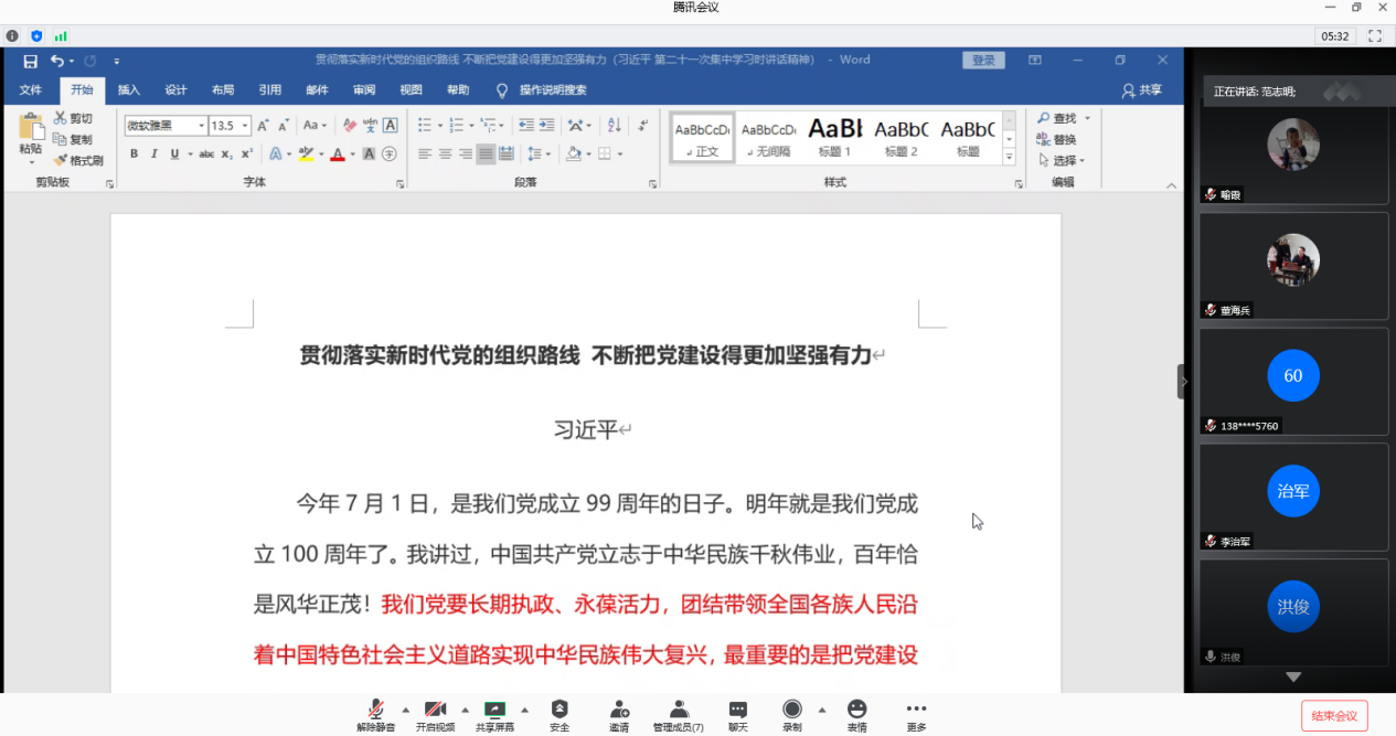 820日,电信学院党委组织召开了中心组学习,本次学习由科研办主任严亚周主持,党委书记范志明主讲,集中学习了“习近平总书记在中央政治局第二十一次集体学习时重要讲话精神”“新华社评论员:深入贯彻新时代党的组织路线——学习习近平总书记在中央政治局第二十一次集体学习时重要讲话”等内容,由于疫情影响,本次学习在通过在线学习方式进行,会后各委员对学习内容发表了个人看法。