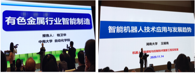 “智能自动化前沿技术”高端创新论坛在岳阳铂尔曼宾馆举行。特邀中国工程院院士、中南大学桂卫华教授作了《有色金属行业智能制造》学术报告,中国工程院院士、湖南大学王耀南教授作了《智能机器人技术应用与发展趋势》学术报告。