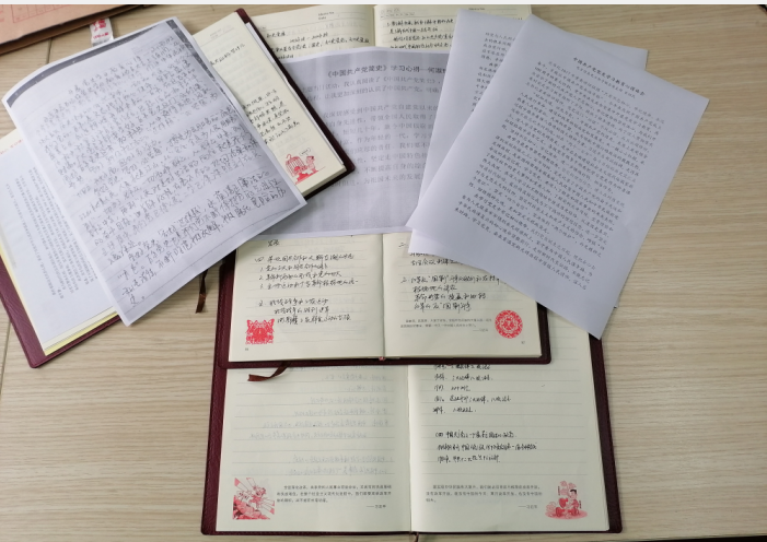 4月6日-16日,支部全体党员首先进行了第一阶段党史学习。党支部利用支部群在网上发送了党史学习资料电子档,党员还自学了《中国共产党简史》、《论中国共产党历史》等资料,党员们在自学过程中书写了学习笔记和心得。通过前期的党史学习,全体共产党员更加坚定理想信念、树牢“四个意识”、坚定“四个自信”、做到“两个维护”,恪守为民情怀、担当历史重任。