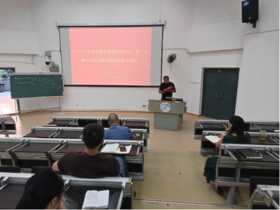 9月6日下午,电气与信息工程学院在3209室组织学习《习近平总书记教育重要论述讲义》第一讲:新时代建设教育强国的根本遵循,全体教职工参加了本次学习,院党委书记俞斌主持学习并讲话。