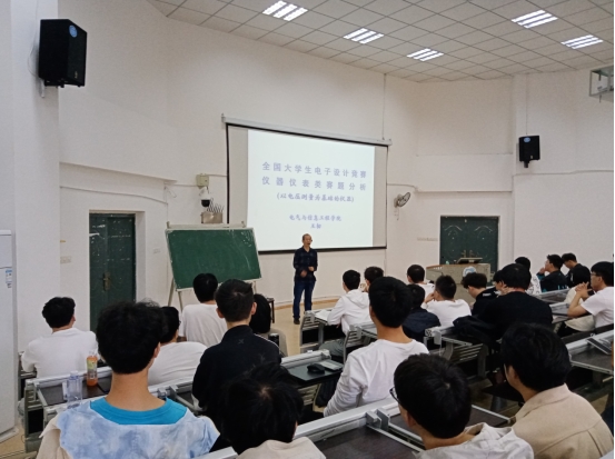 为了参加即将举办的全国大学生电子设计竞赛,力争在仪器仪表类赛题中取得良好成绩,同时,也为了提高学生的实践动手能力以及竞赛指导组教师的指导能力,2021年4月27日下午2点,王韧教师在电信楼3209教室举办了电子设计竞赛仪器仪表类赛题学术讲座。