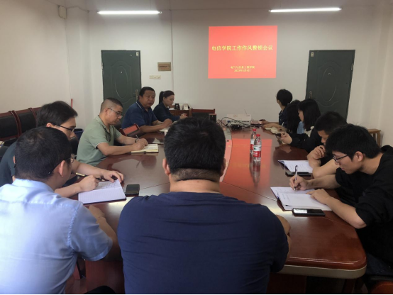5月4日,电气与信息工程学院于3309会议室召开工作作风整顿会议,全体院领导、行政人员、支部书记参与会议,会议由学院党委书记俞斌主持。