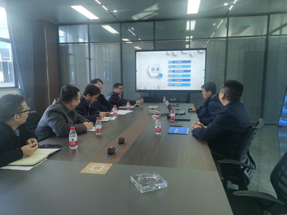 在交流会上,郑启发总经理介绍了企业的产品线和发展历程,方小勇和何西分别介绍了学校和电信学院校企合作情况,双方还就前期接洽的300kHz、800V脉冲开关电源的方案进行了讨论。
