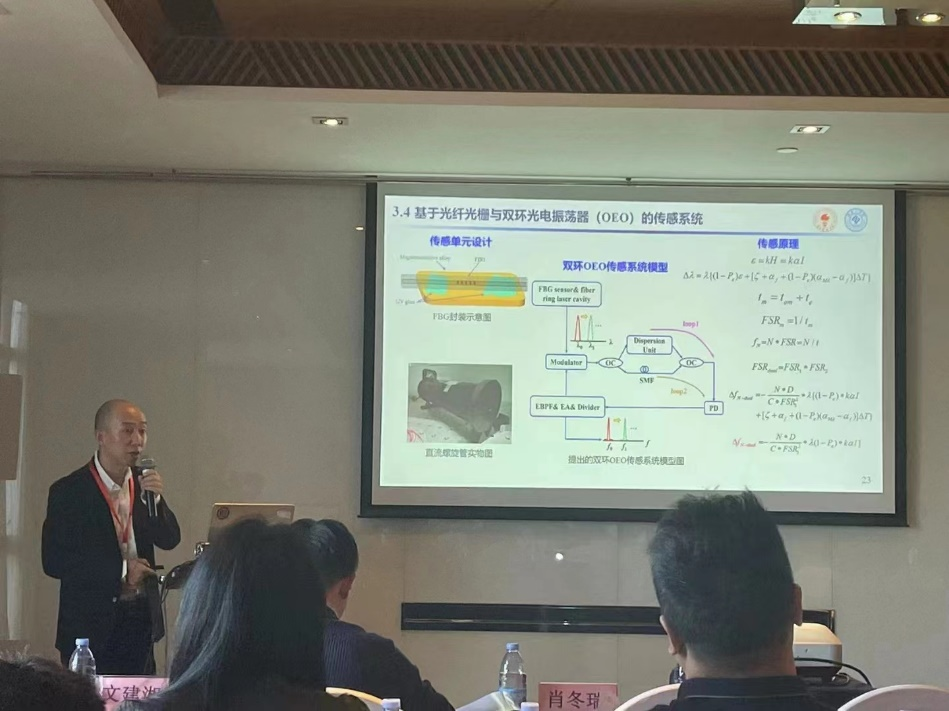 我院肖冬瑞博士应邀参会,并作了20分钟邀请报告(Invited),报告题目为“基于微波光子技术的高分辨率和高精度多参量光纤传感解调研究”(报告信息:https://mp.weixin.qq.com/s/Z5Na_VI5uJ68eSS1SGHY9A)。肖冬瑞博士在现场还协助了南方科技大学讲席教授沈平老师主持了分会场。
