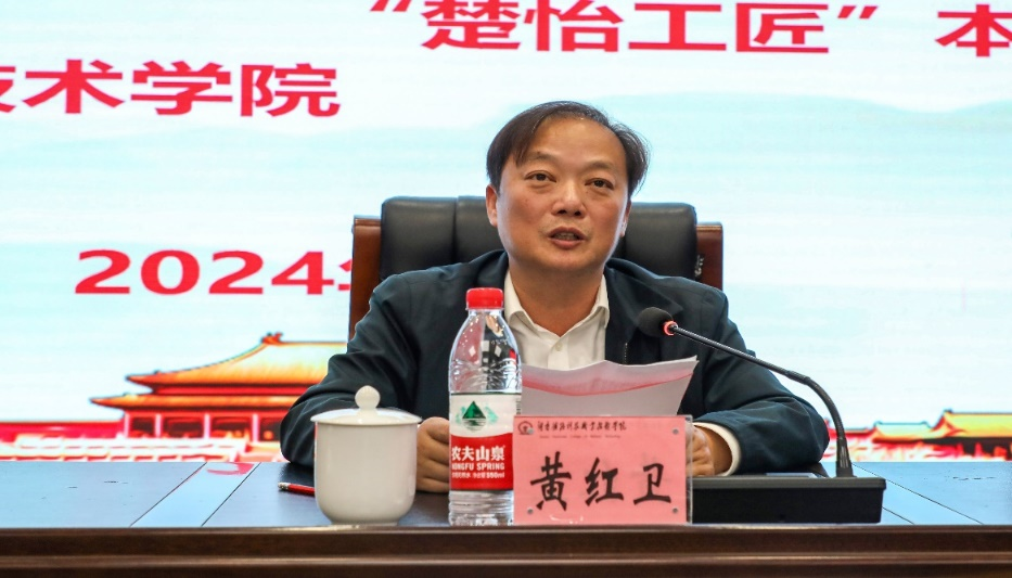 黄红卫在开班仪式上作重要讲话。他指出,实施2024级电气工程及其自动化“楚怡工匠计划”,是英国上市公司官网365与湖南铁路科技职业技术学院两校携手并进、共同探索人才培养的重要举措,旨在弘扬工匠精神,培养具有卓越技能和创新能力的高素质人才。同时,黄红卫对同学们提出了殷切希望,希望同学们筑梦启航,勇于探索,追求卓越,努力成长为新时代的优秀工匠。