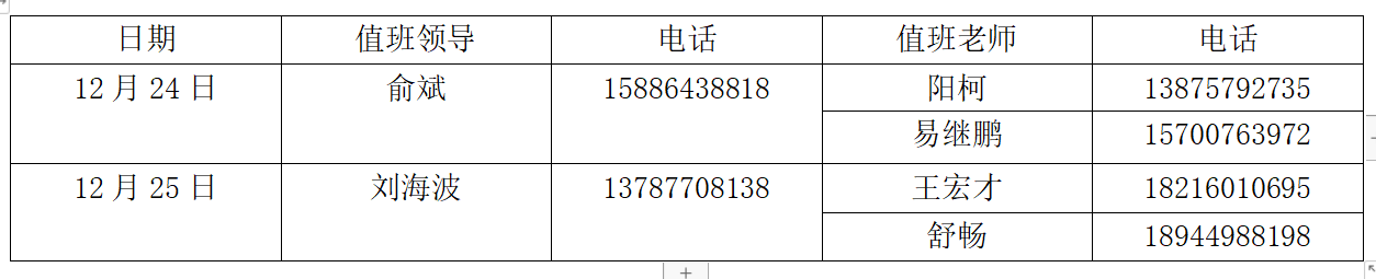 2021年电气与信息工程学院平安夜、圣诞节值班安排表