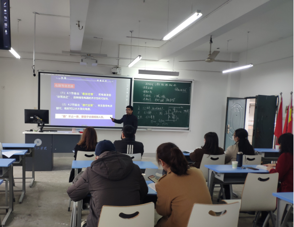 李祖林教授主讲了《电路分析》公开课,分别从哲学、数学、科学、技术和工程等五个层面进行了课程简介、课程教学内容、课程学习方法及考核方式等方面说课,并以“6.1.3差分电路的耦合方式及分析方法”内容进行了授课展示。李教授紧紧围绕核心凝练“三抓,三做”的知识和能力目标、“外因是条件,内因是根本”的思政目标开展教学设计和讲解,PPT课件和黑板板书相结合,教材驾驭能力强,课堂把握精准且极富激情和感染力。课后,教师们对课程提出了持续改进的建设性意见,可进一步改善PPT课件制作的精美度,可稍减慢语速,提升课堂教学质量。