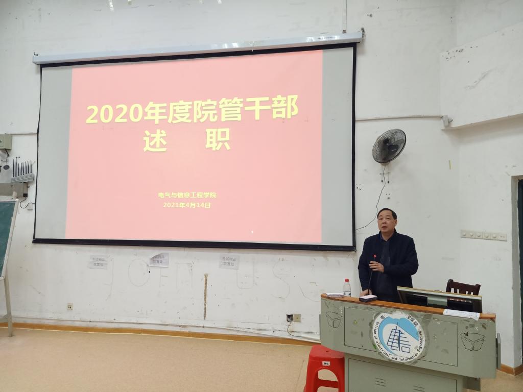 4月14日下午,电气与信息工程学院于3209报告厅召开2020年度院管干部述职会议暨全院教职工大会。全院领导班子成员、无党派人士、全体教职工参会。会议由院党委书记范志明主持。