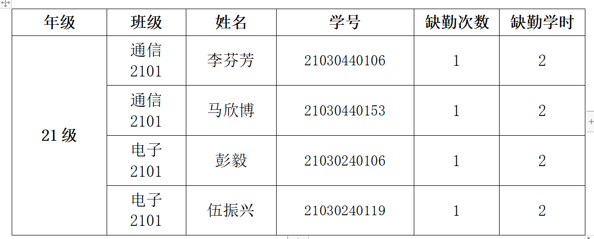 电气与信息工程学院 2021-2022-1学期第十四周课堂考勤表情况通报