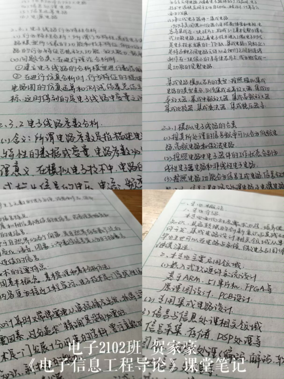 笔尖在稿纸上游走,留下了优美的字迹,一笔一划都凝练着知识与努力、奋斗与汗水。笔记之美,不仅美在其字、内容以及排版,更美在书写者用心专一,思想在知识中碰撞充实。让我们带着发现美、欣赏美的眼睛,一起感受电信学子昂扬向上,奋勇拼搏的精神吧!