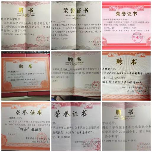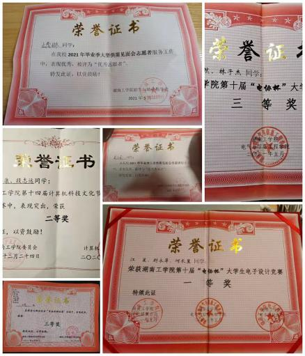 寸雄杰:衡阳市大学生篮球联赛三等奖;颜子杰,秦登翔2020年“新生杯”第二名,“湖工杯”足球联赛“第三名”。