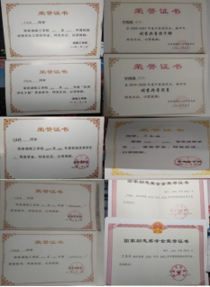 在校期间个人多次荣获校级优秀学生干部、校级优秀共青团员、大学生“挑战杯”课外科技学术竞赛校级三等奖。任职班长期间所在班级荣获校级优秀团支部、校级先进班集体。