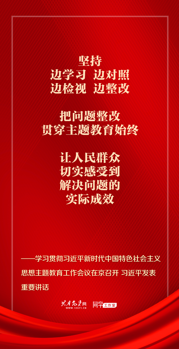 ●坚持边学习、边对照、边检视、边整改,把问题整改贯穿主题教育始终,让人民群众切实感受到解决问题的实际成效。