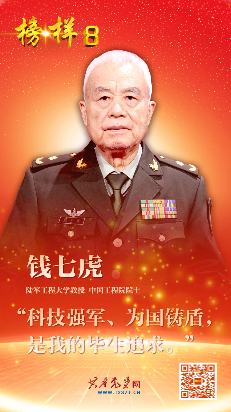 始终勇攀高峰、为国铸盾。钱七虎是我国防护工程领域著名专家、现代防护工程理论的奠基人、防护工程学科的创立者、防护工程科技创新的引领者,为我国防护工程的建设发展作出了突出贡献。他长期从事防护工程和地下工程技术研究,建立了从浅埋工程到深埋工程防护、从单体工程到工程体系防护、从常规抗力到超高抗力防护等学术理论与技术体系,解决了空中核爆炸、触地核爆炸、钻地核爆炸以及高技术常规武器侵彻爆炸等一系列工程防护关键技术难题,提出军事工程防护、城市地下空间开发利用等战略性建议。累计出版专著14部,发表学术论文近300篇,获国家科技进步一、二、三等奖各1项,军队科技进步一等奖2项、二等奖4项,军队级教学成果奖2项,国家人防科技进步一等奖1项,为我国防护工程各个时期的建设发展和科技水平跃居世界前列作出了开创性、历史性贡献。
