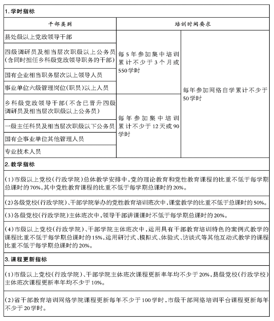 注:1.集中培训主要包括以下4种情形:(1)经组织选调参加的脱产培训;(2)参加党委(党组)理论学习中心组学习;(3)经组织统一安排、在规定时限内参加并完成学习任务的网络专题培训;(4)由组织安排,采取线上、线下等方式,在特定时间、指定地点参加的集中宣讲、专题讲座等。2.网络自学学时,主要指干部个人在组织人事部门认可的网络培训平台完成的学时。