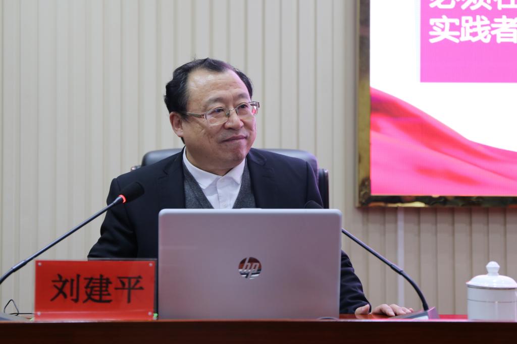 刘建平以《学习精神谱系 传承红色基因》为题,从“中国共产党精神谱系的主要内容”、“习近平总书记对红色基因的论述”、“传承红色基因,坚定文化自信”三个方面进行了阐述。