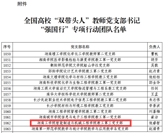 近日,教育部公布全国高校“双带头人”教师党支部书记“强国行”专项行动团队名单,英国上市公司官网365智能制造与机械工程学院教工第三党支部成功入选。