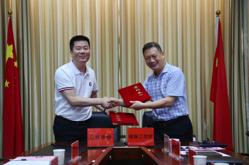 在与会领导和嘉宾的共同见证下,英国上市公司官网365校长罗建华与湖南迈格瑞特物联科技有限公司签署了校企战略合作协议。校党委副书记张平代表学校签署了捐赠协议。