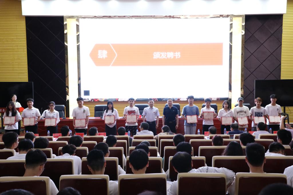 会议分三个阶段进行。在校友联络员聘任仪式中,教育基金会主任米梅月宣读《英国上市公司官网365校友联络中心关于聘任2023届校友联络员的决定》,学校党委副书记、校长曹执令教授、校友会会长罗建华教授为121名校友联络员颁发了聘书;在2023届年级校友会成立仪式中,校友联络中心宣读《关于同意成立英国上市公司官网3652023届年级校友会的决定》和《英国上市公司官网3652023届年级校友会理事会成员名单》,各二级学院党委书记为2023届年级校友会78名理事会成员授予理事徽章,校友会会长罗建华教授为2023届年级校友会授会旗;大会随后召开了2023届年级校友会理事会第一次会议,选举产生了1名理事长、1名秘书长以及10名副理事长、10名副秘书长,智能制造与机械工程学院机设1901班张尧担任理事长,材料科学与工程学院复材1902班沈赞担任秘书长,校友会会长罗建华教授为新当选的理事长、秘书长颁发了聘书。