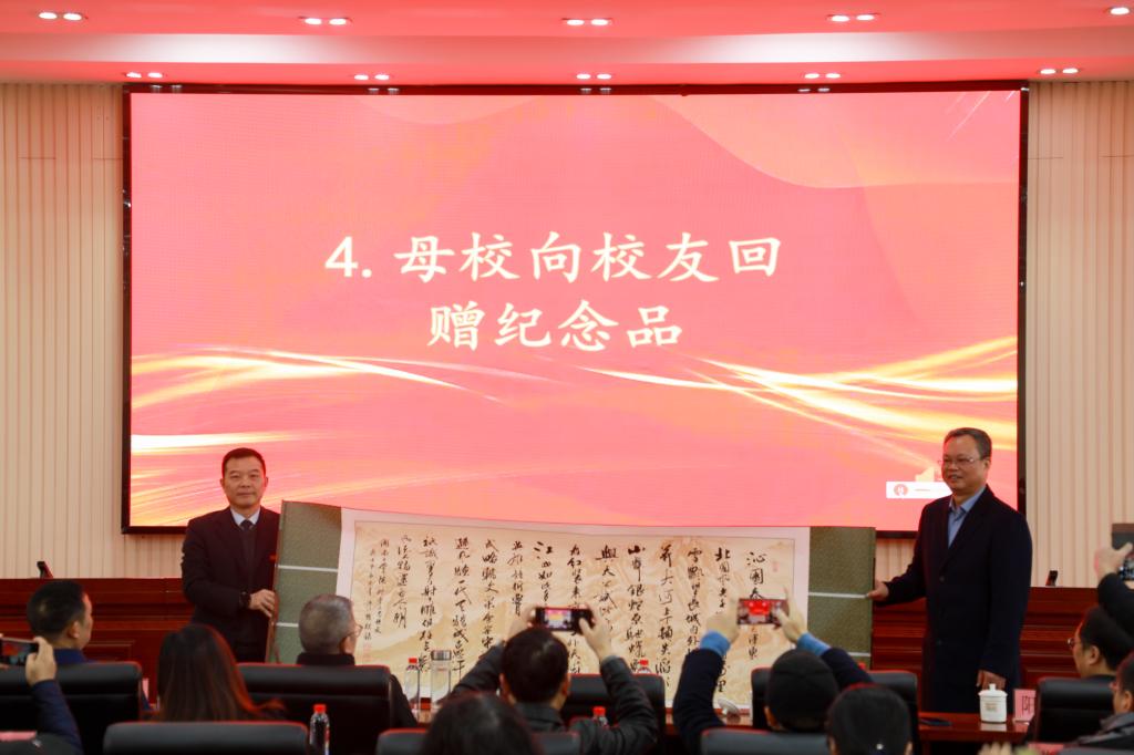 校党委书记曹执令代表学校回赠纪念品