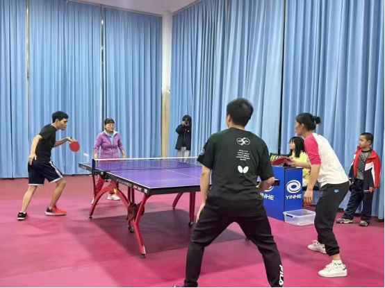 赛场上,老师们每球必争,敢打敢拼,不畏强敌,推、拉、搓、削、挡,长短球结合,下旋、弧圈、侧旋,划出一道道美丽的弧线。充分展现了奋力拼搏、攻坚克难的国球精神。
