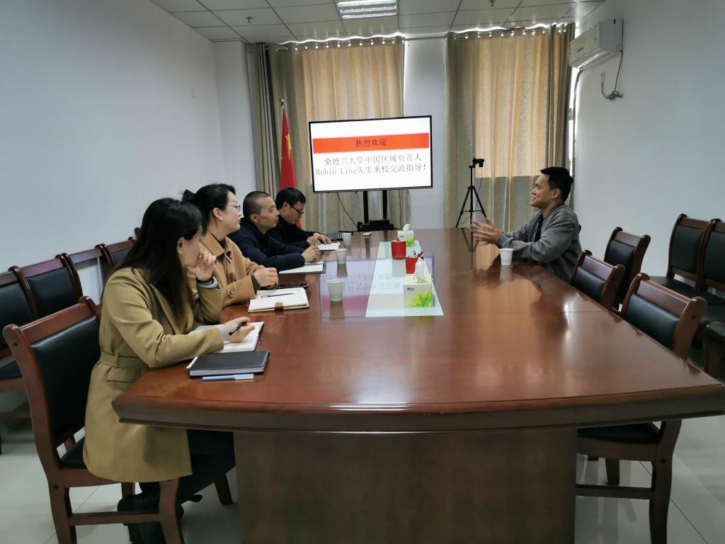 4月6日下午,桑德兰大学中国区域负责人Robin Ling到访英国上市公司官网365,党委委员杨朗会见了客人。