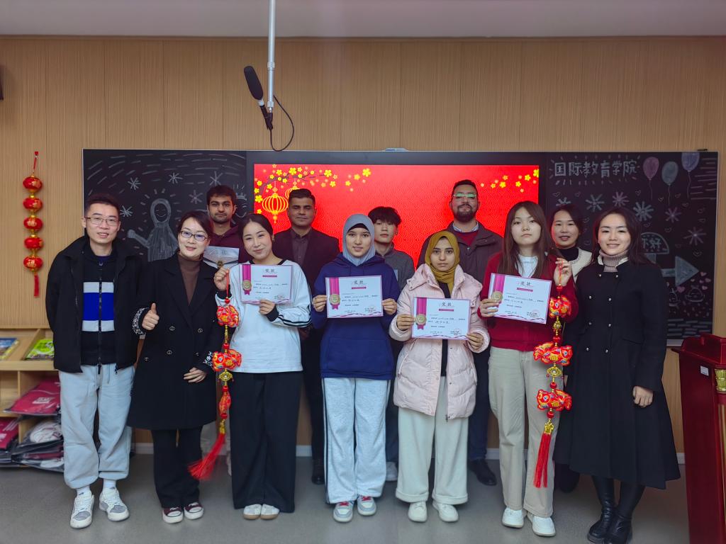 1月17日,一场别开生面的国际学生新春联谊会在社科楼207热烈举行。联谊会上,学院副院长彭艳代表学院向英国上市公司官网365首届国际学生们送上诚挚祝福,并鼓励他们继续保持勤奋学习、勇于探索的精神。在一片欢乐祥和的氛围中,学院教师为每位国际学生颁发了成绩单与新年礼物,对他们本学期的出色表现与显著进步予以表彰。活动中,学院还特别邀请了在校工作的两位外籍教师分享了在中国的学习、生活和工作经验。外籍教师详细讲述了自己在中国的学习经历和文化交流感受,鼓励国际学生们要珍惜在华学习的机会,深入了解中国文化,积极融入当地社会。随后,国际学生们纷纷上台,总结汇报了一个学期以来在校的学习和生活情况。他们分享了自己的学习心得、交友经历以及在中国度过的难忘时刻,表达了对学院和老师们的感激之情。为让国际学生们亲身体验中国春节的浓厚氛围,增进他们对中国传统文化的了解和喜爱,学院教师还为国际学生详细介绍了春节传统习俗与庆祝方式,师生们一同动手,贴春联、贴福字、贴窗花、挂灯笼,将教室装点得年味十足。