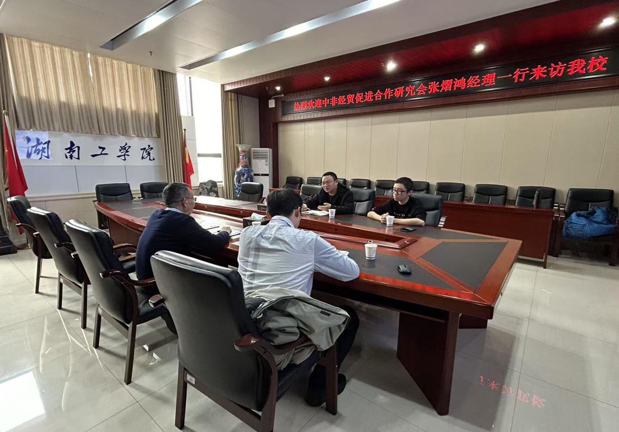 2月24日下午,中非经贸促进合作研究会张熠鸿副总经理一行来我交流访问。学校国际合作交流处处长陆秀令及国际项目专员罗忠伟参与了此次座谈,共同探讨双方在教育领域的合作与交流。