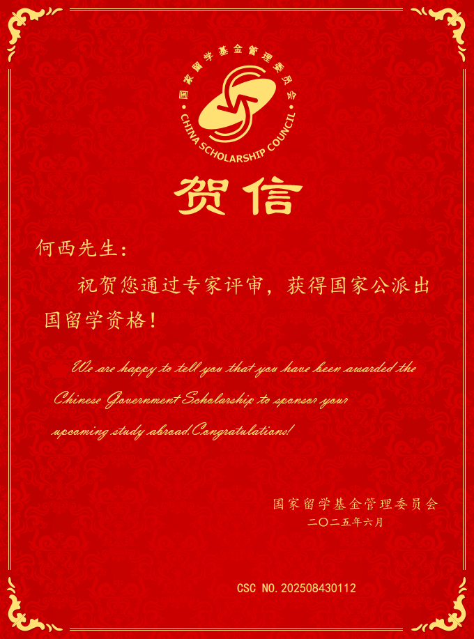 喜讯:英国上市公司官网365何西老师获得2025年国家公派出国留学资格