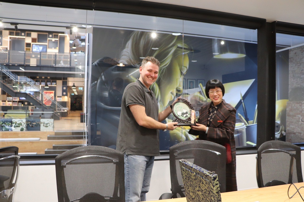 在梅西大学,国际部经理Angela Drake女士热情接待了访问团一行,Angela Drake女士介绍了梅西大学办学历史、办学特色、优势学科、国外留学生、与中国高校和政府合作情况。访问团先后与梅西大学的食品与先进技术学院院长Julian Heyes、自动控制专家Liqiong Tang、机械电子专家Ibrahim Al-Bahadly等进行座谈,就电子电气、机器人和先进制造等专业合作进行了深入交流和探讨,双方对开展学生交换、学分互认、教师互派和教师培养等达成一致意向。在Tang教授的陪同下,参观了电子电气、自动控制、先进加工等实验室。
