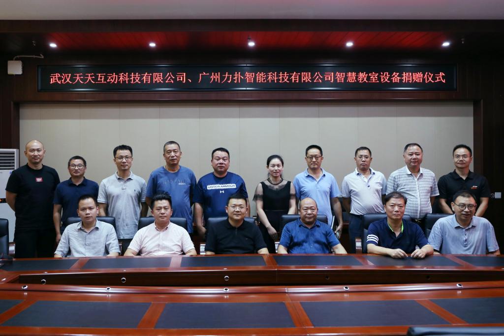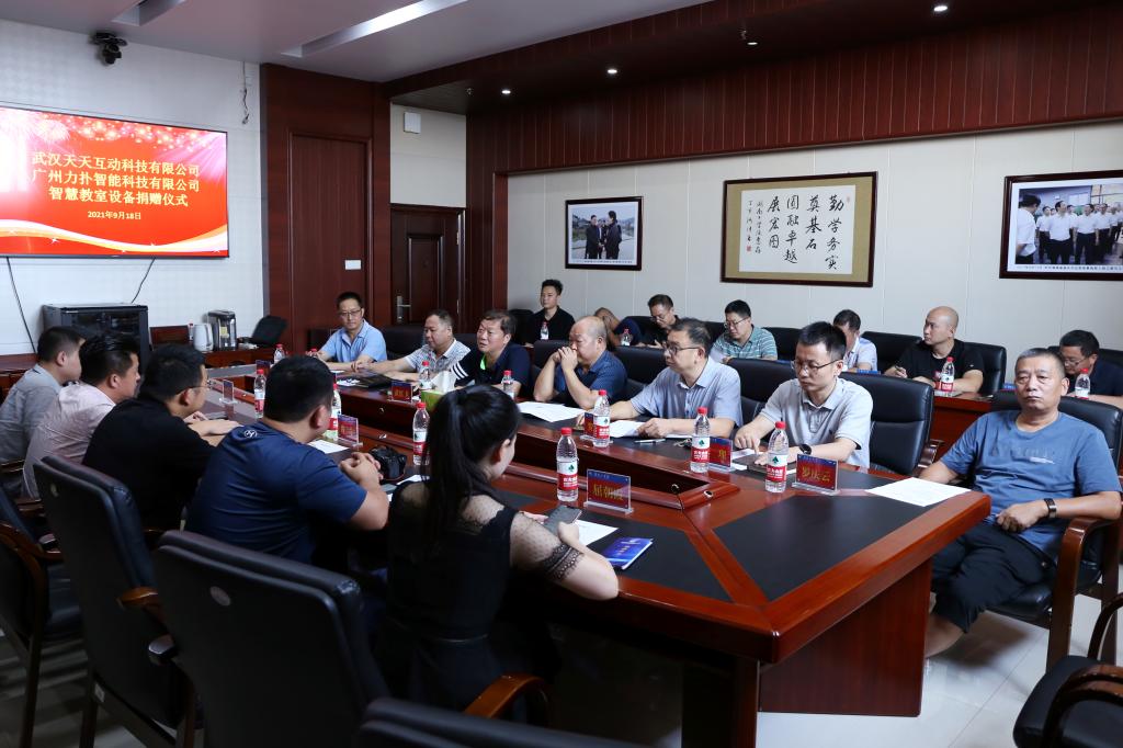 9月18日下午,武汉天天互动科技有限公司和广州力扑智能科技有限公司智慧教室设备捐赠仪式在英国上市公司官网365教学大楼12楼会议室举行。副校长刘升学、黄红卫出席会议并讲话,校属各相关职能部门负责人参加会议,校友总会办公室主任贺旭主持会议。