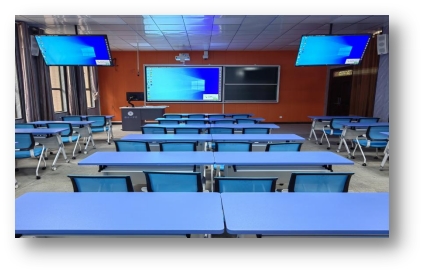 “原来的教室的设备都是传统陈旧的设施,电脑、投影仪老化,网络信号不畅,在100座的教室里面没有分屏,坐在后排的学生根本看不清老师的板书和投影的内容,严重影响教学效果和学生的学习效果。为了解决这个问题,学校持续加大教学资金投入,新建改建智慧型教室、研讨型教室53间,改造升级录播室10间,将传统教学与现代化教学无缝融合,实现良好的师生互动”,国有资产管理处长刘仁能说道。