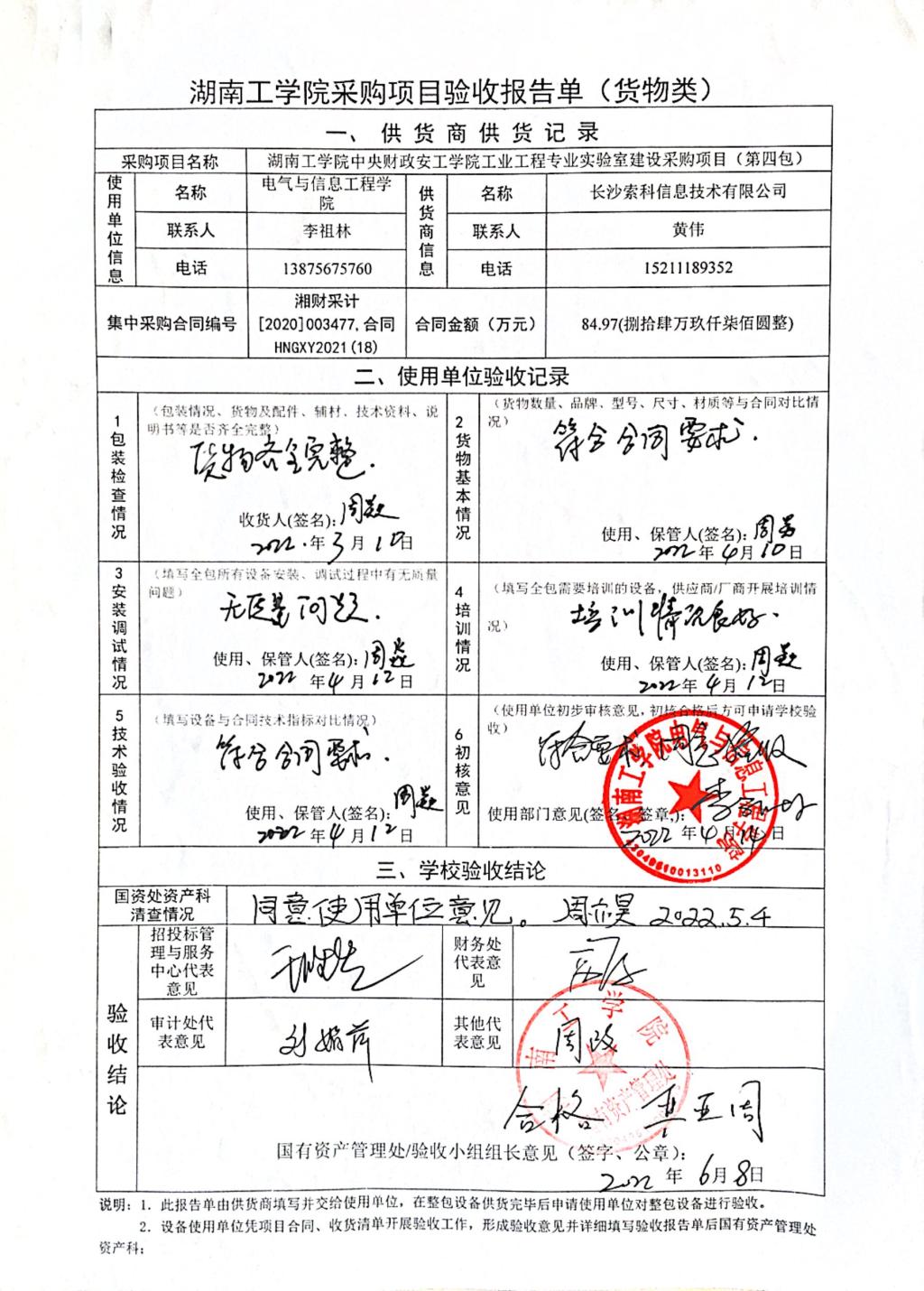 2022年5月关于湘财采计【2020】003477号项目验收情况公告