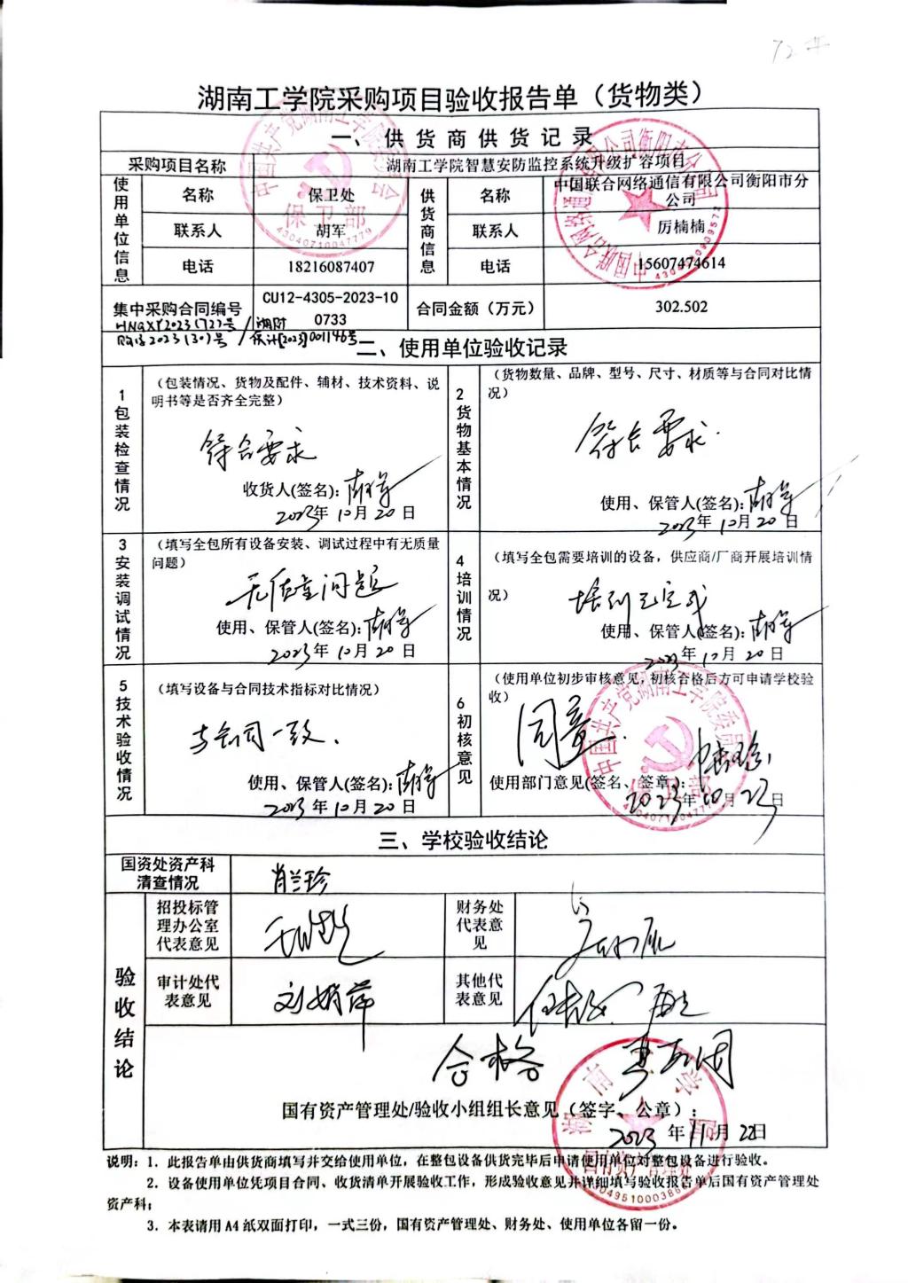 根据国有资产管理处对采购项目的验收安排,2023年11月17日国有资产管理处组织招投标管理与服务中心、审计处、财务处、教务处、网络信息中心以及使用部门代表对供应商的货品进行现场验收。