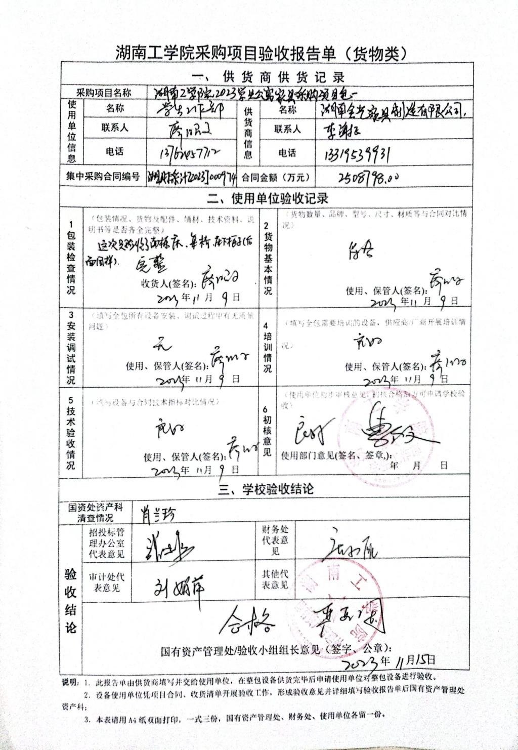 2023年10月关于湘财采计【2023】000974号项目验收情况公告