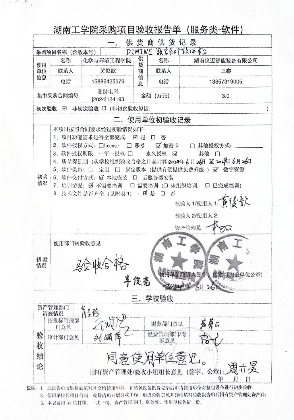 根据国有资产管理处对采购项目的验收安排,2024年6月26日国有资产管理处组织招投标管理与服务中心、审计处、财务处、人事处以及使用部门代表对供应商软件进行现场验收。