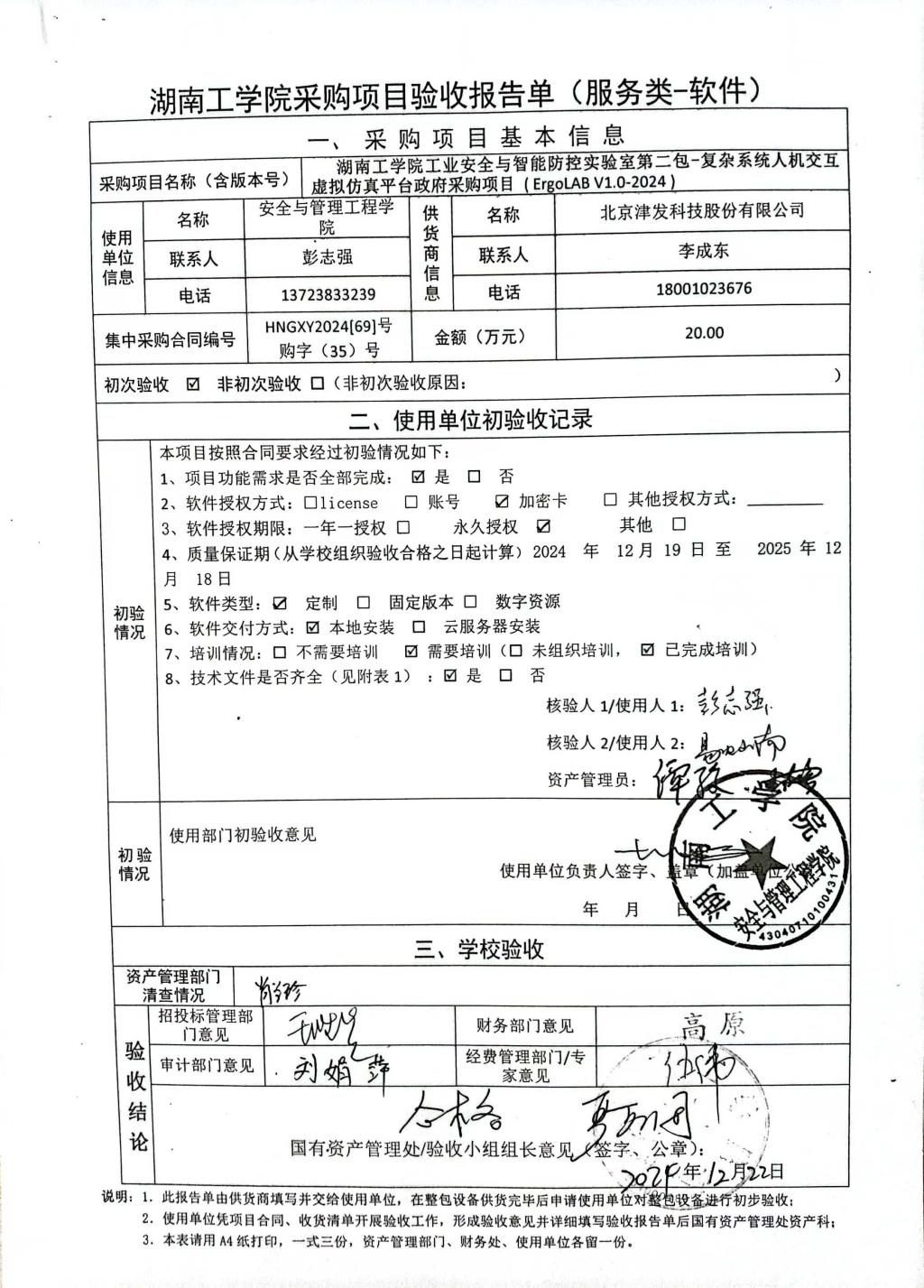 2024年12月关于HNGXY2024【69】号 购字2024【35】号采购项目验收情况公告
