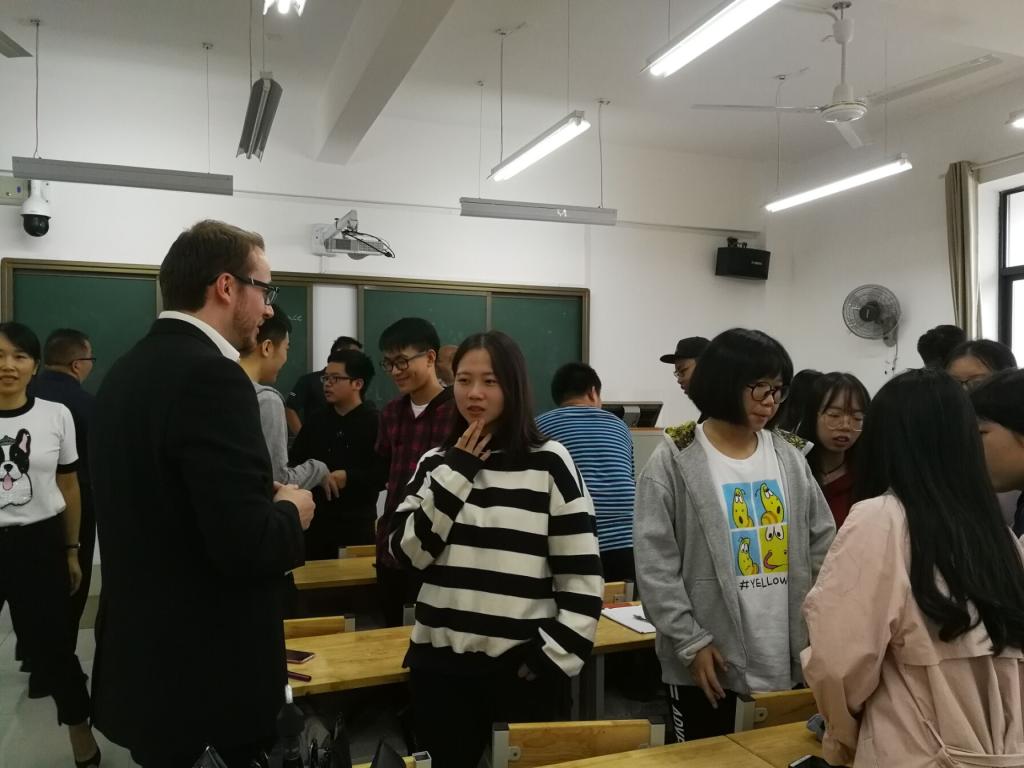 Overview of Int’l Cooperation Current Location: Home >> International >> Overview of Int’l Cooperation >> Content Teachers from University of Sunderland in the UK are giving lectures to students Author:Date:2022-11-28View: