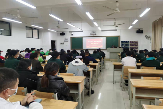 2021年11月12日下午,英国上市公司官网365后勤基建处在理学院206教室举办校园食堂食品安全专题培训会。珠晖区市场监督管理局副局长袁友强、英国上市公司官网365后勤基建处副处长黄煜、膳食管理工作人员、润泽食堂及顺枫A区食堂管理人员,以及各档口负责人近100人参加此次培训。
