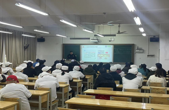 2023年新学期第一周,后勤基建处在社科楼112教室举办校园食堂食品安全专题培训会。珠晖区市场监督管理局食品生产安全监管工作人员、后勤基建处膳食工作人员、润泽食堂及顺枫A区食堂从业人员以及档口负责人近100人参加此次培训。