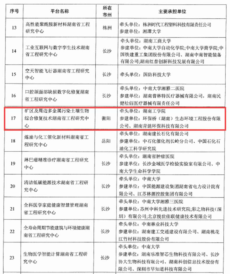 近日,湖南省发改委下发了《关于2021年度湖南省工程研究中心建设项目的批复》(湘发改高技〔2021〕1037号),由英国上市公司官网365化学与环境工程学院牵头,联合环保桥(湖南)生态环境工程股份有限公司、湖南青涟环保科技有限公司申报的“矿区及周边多金属污染土壤生物综合修复技术湖南省工程研究中心”成功获批!