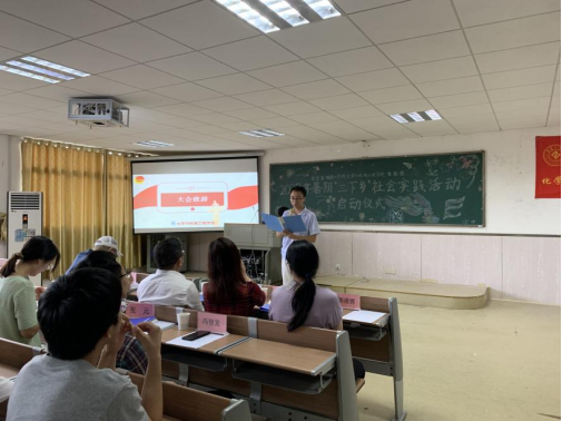 蔡玲宣读了参加暑期“三下乡”社会实践活动的团队名单,周立为暑期“三下乡”社会实践重点团队授旗。全体参与社会实践活动的同学进行社会实践志愿者宣誓,学生代表胡重阳进行个人发言,他鼓励大家不忘初心,不怕困难,坚定信念,积极投身社会实践,在实践中锻炼成才。