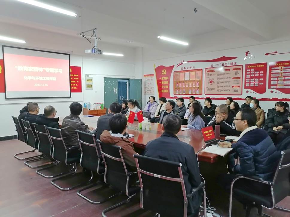 2023年12月15日,我院在材化楼1310会议室举行了一场弘扬教育家精神的专题学习活动,旨在提升教职工的教育水平和教学素养,推动学院教育事业的全面发展。会议由院长辛俊亮主持,党委书记周立、党委副书记蔡玲、副院长黄俊歆、副院长刘宁及学院全体教师参加。
